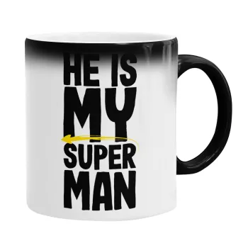 He is my superman, Κούπα Μαγική, κεραμική, 330ml που αλλάζει χρώμα με το ζεστό ρόφημα