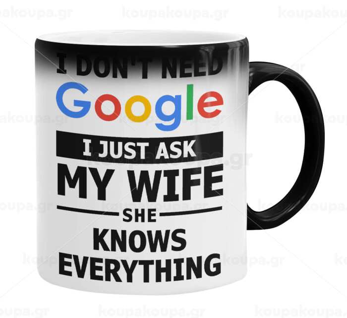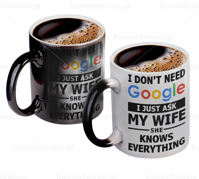 I don't need Google, just ask my WIFE, Κούπα Μαγική, κεραμική, 330ml που αλλάζει χρώμα με το ζεστό ρόφημα