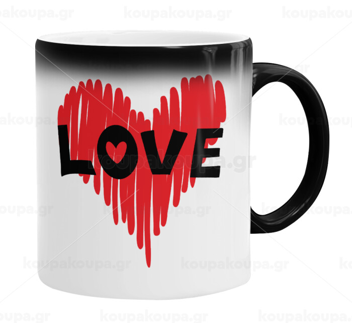 I Love You red heart, Κούπα Μαγική, κεραμική, 330ml που αλλάζει χρώμα με το ζεστό ρόφημα
