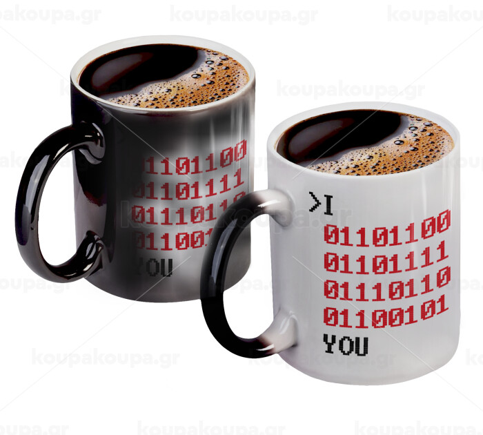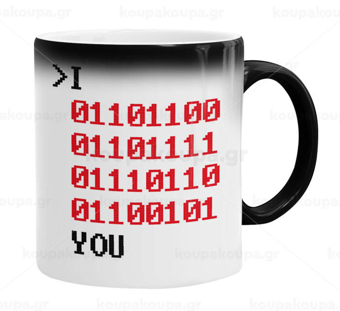 I .... YOU, binary secret MSG, Κούπα Μαγική, κεραμική, 330ml που αλλάζει χρώμα με το ζεστό ρόφημα