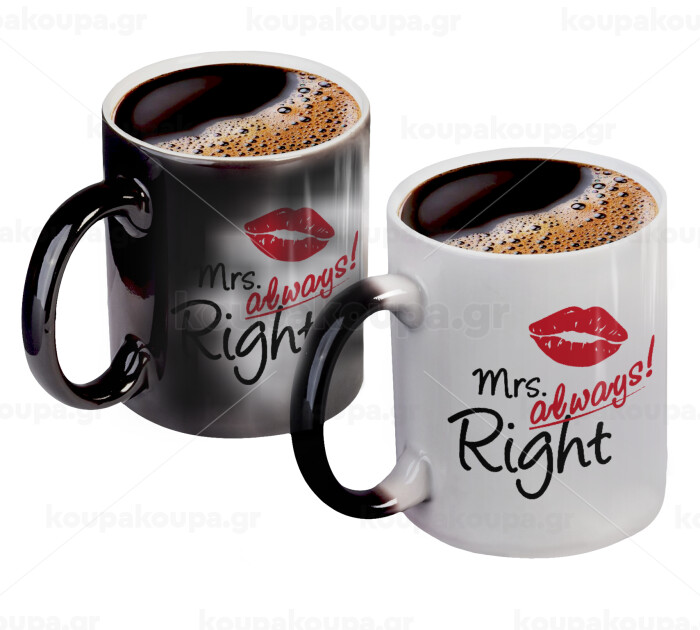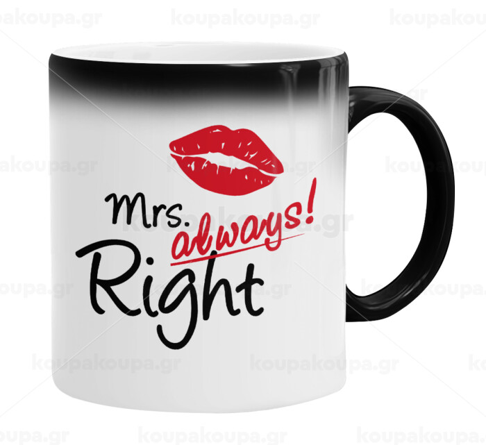 Mrs always right kiss, Κούπα Μαγική, κεραμική, 330ml που αλλάζει χρώμα με το ζεστό ρόφημα