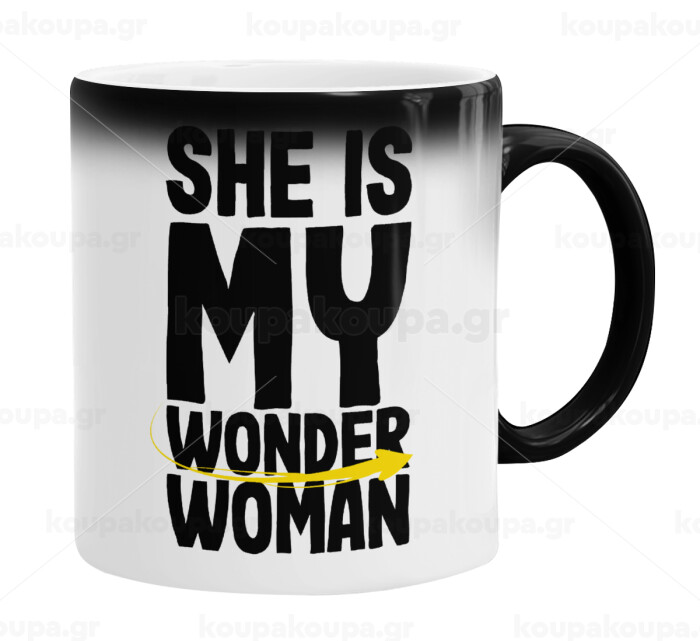 She is my wonder woman, Κούπα Μαγική, κεραμική, 330ml που αλλάζει χρώμα με το ζεστό ρόφημα