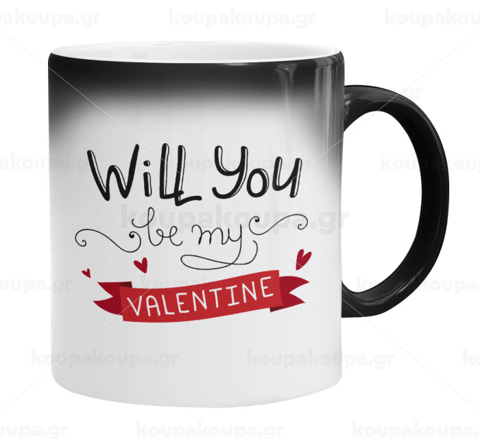Will you be my Valentine???, Κούπα Μαγική, κεραμική, 330ml που αλλάζει χρώμα με το ζεστό ρόφημα