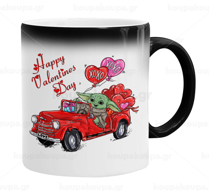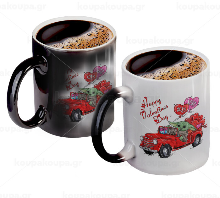 Yoda, happy valentines day (xoxo), Κούπα Μαγική, κεραμική, 330ml που αλλάζει χρώμα με το ζεστό ρόφημα