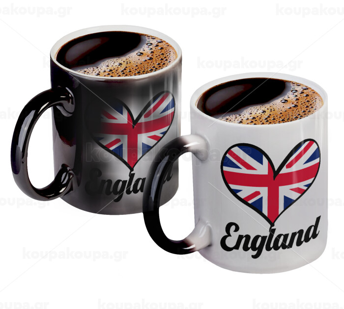 England flag, Κούπα Μαγική, κεραμική, 330ml που αλλάζει χρώμα με το ζεστό ρόφημα
