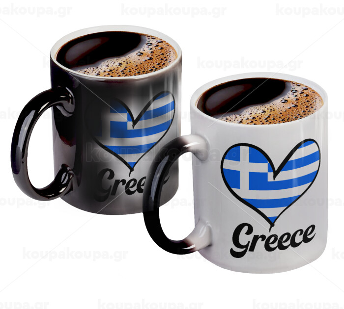 Greece flag, Κούπα Μαγική, κεραμική, 330ml που αλλάζει χρώμα με το ζεστό ρόφημα