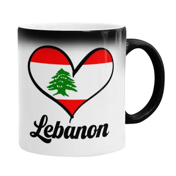 Lebanon flag, Κούπα Μαγική, κεραμική, 330ml που αλλάζει χρώμα με το ζεστό ρόφημα
