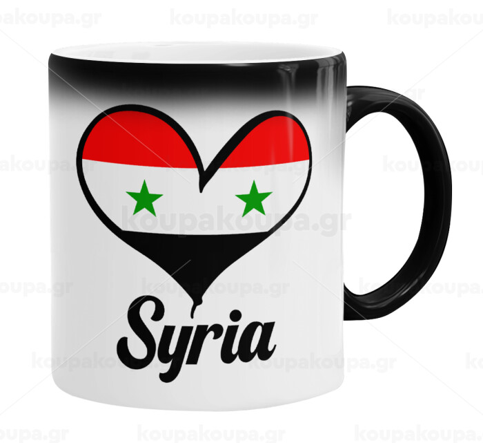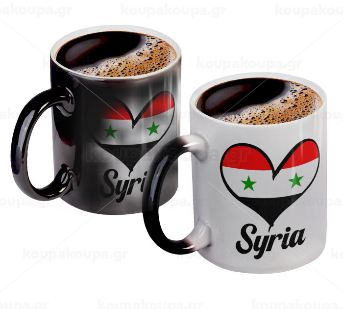 Syria flag, Κούπα Μαγική, κεραμική, 330ml που αλλάζει χρώμα με το ζεστό ρόφημα