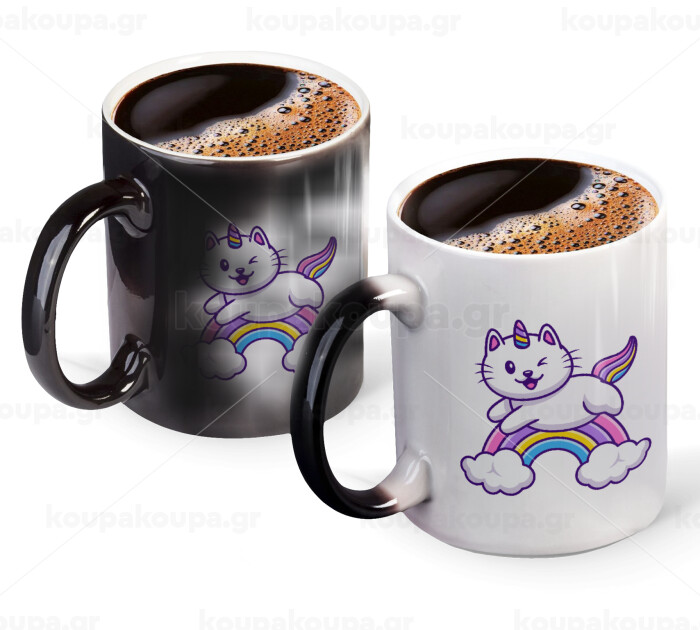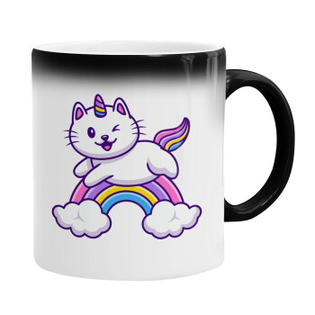 Cute cat unicorn, Κούπα Μαγική, κεραμική, 330ml που αλλάζει χρώμα με το ζεστό ρόφημα