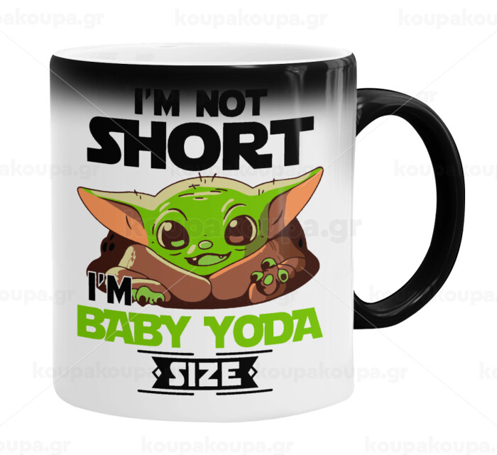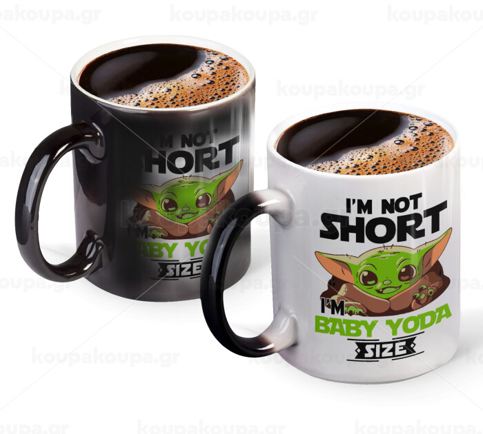 I'm not short, i'm Baby Yoda size, Κούπα Μαγική, κεραμική, 330ml που αλλάζει χρώμα με το ζεστό ρόφημα