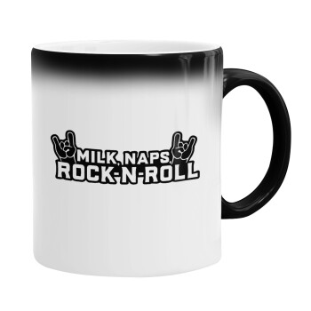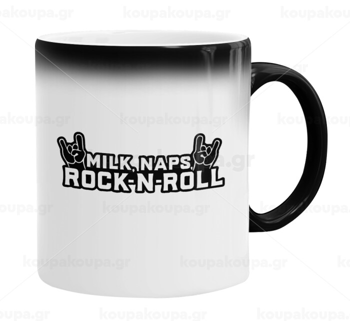 Milk, Naps, Rock N Roll, Κούπα Μαγική, κεραμική, 330ml που αλλάζει χρώμα με το ζεστό ρόφημα