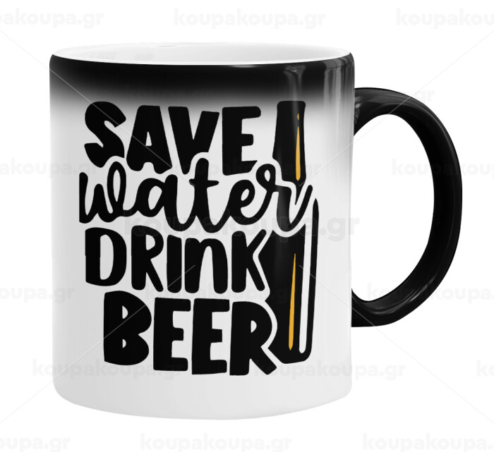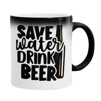 Save Water, Drink BEER, Κούπα Μαγική, κεραμική, 330ml που αλλάζει χρώμα με το ζεστό ρόφημα