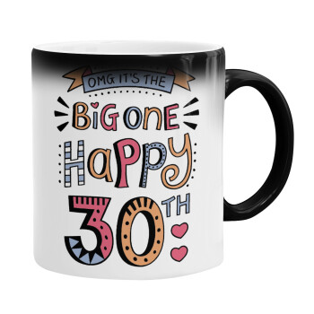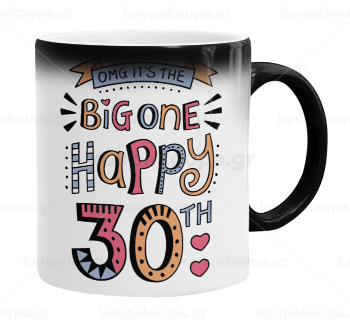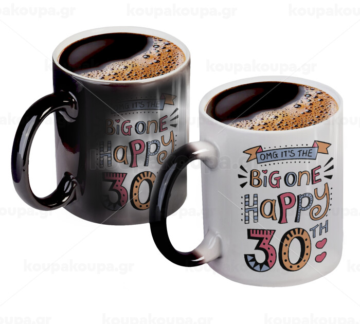 Big one Happy 30th, Κούπα Μαγική, κεραμική, 330ml που αλλάζει χρώμα με το ζεστό ρόφημα