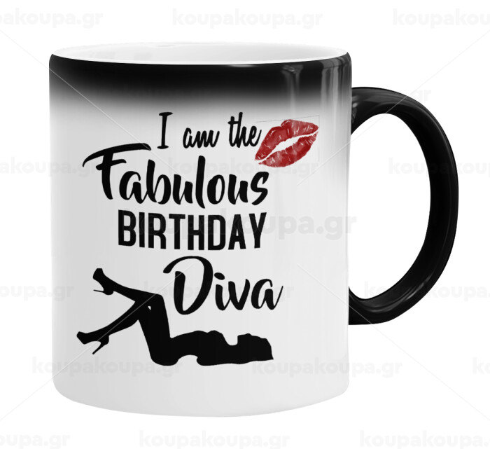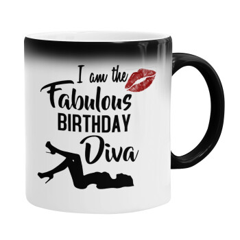 I am the fabulous Birthday Diva, Κούπα Μαγική, κεραμική, 330ml που αλλάζει χρώμα με το ζεστό ρόφημα
