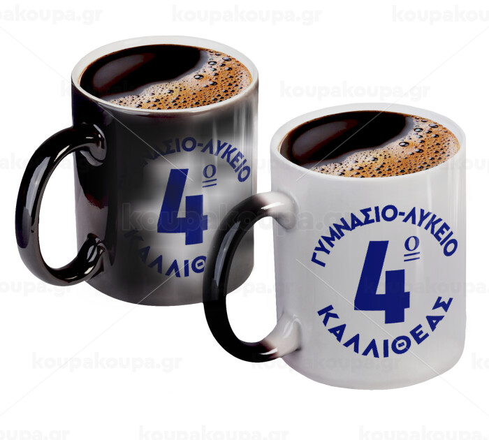 Κούπα μαύρη μαγική γυαλιστερή εξαιρετικής ποιότητας με έντονα χρώματα. Με καφέ, τσάι, νερό ή οποιοδήποτε υγρό από 50 βαθμούς και άνω η κούπα αρχίζει να εμφανίζει το σχέδιο έκπληξη. Μόλις το υγρό πέφτει κάτω από τους 50 βαθμούς και αρχίζει να κρυώνει, ξαναγίνεται μαύρη.
