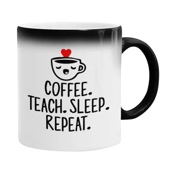 Coffee Teach Sleep Repeat, Κούπα Μαγική, κεραμική, 330ml που αλλάζει χρώμα με το ζεστό ρόφημα