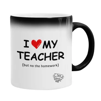 i love my teacher but no the homework, Κούπα Μαγική, κεραμική, 330ml που αλλάζει χρώμα με το ζεστό ρόφημα