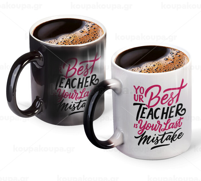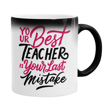 Typography quotes your best teacher is your last mistake, Κούπα Μαγική, κεραμική, 330ml που αλλάζει χρώμα με το ζεστό ρόφημα