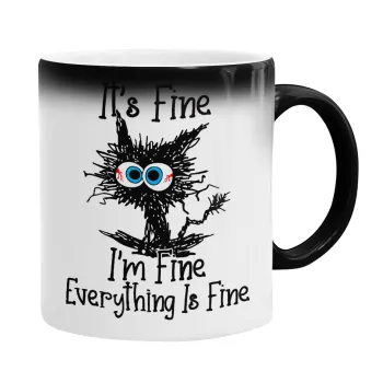 Cat, It's Fine I'm Fine Everything Is Fine, Κούπα Μαγική, κεραμική, 330ml που αλλάζει χρώμα με το ζεστό ρόφημα
