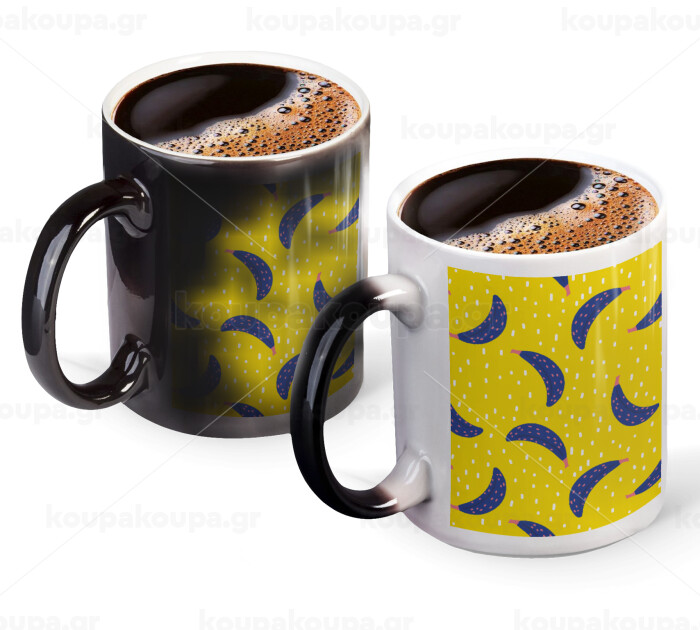 Κούπα μαύρη μαγική γυαλιστερή εξαιρετικής ποιότητας με έντονα χρώματα. Με καφέ, τσάι, νερό ή οποιοδήποτε υγρό από 50 βαθμούς και άνω η κούπα αρχίζει να εμφανίζει το σχέδιο έκπληξη. Μόλις το υγρό πέφτει κάτω από τους 50 βαθμούς και αρχίζει να κρυώνει, ξαναγίνεται μαύρη.