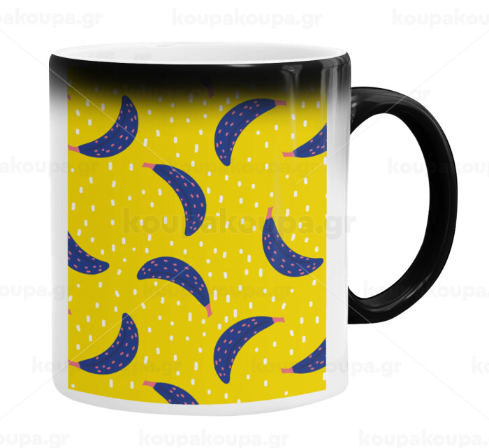 Yellow seamless with blue bananas, Κούπα Μαγική, κεραμική, 330ml που αλλάζει χρώμα με το ζεστό ρόφημα