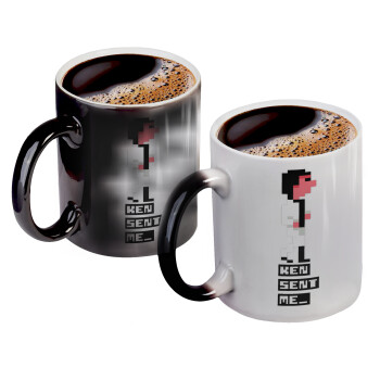 Κούπα μαύρη μαγική γυαλιστερή εξαιρετικής ποιότητας με έντονα χρώματα. Με καφέ, τσάι, νερό ή οποιοδήποτε υγρό από 50 βαθμούς και άνω η κούπα αρχίζει να εμφανίζει το σχέδιο έκπληξη. Μόλις το υγρό πέφτει κάτω από τους 50 βαθμούς και αρχίζει να κρυώνει, ξαναγίνεται μαύρη.