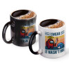 Κούπα μαύρη μαγική γυαλιστερή εξαιρετικής ποιότητας με έντονα χρώματα. Με καφέ, τσάι, νερό ή οποιοδήποτε υγρό από 50 βαθμούς και άνω η κούπα αρχίζει να εμφανίζει το σχέδιο έκπληξη. Μόλις το υγρό πέφτει κάτω από τους 50 βαθμούς και αρχίζει να κρυώνει, ξαναγίνεται μαύρη.