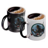 Κούπα μαύρη μαγική γυαλιστερή εξαιρετικής ποιότητας με έντονα χρώματα. Με καφέ, τσάι, νερό ή οποιοδήποτε υγρό από 50 βαθμούς και άνω η κούπα αρχίζει να εμφανίζει το σχέδιο έκπληξη. Μόλις το υγρό πέφτει κάτω από τους 50 βαθμούς και αρχίζει να κρυώνει, ξαναγίνεται μαύρη.