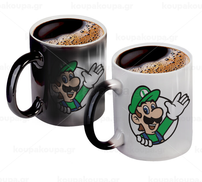 Super mario Luigi win, Κούπα Μαγική, κεραμική, 330ml που αλλάζει χρώμα με το ζεστό ρόφημα