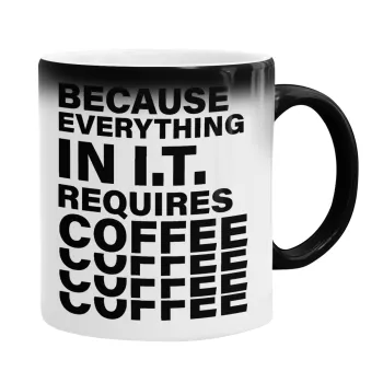 Because everything in I.T. requires coffee, Κούπα Μαγική, κεραμική, 330ml που αλλάζει χρώμα με το ζεστό ρόφημα