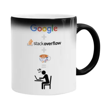 Google + Stack overflow + Coffee, Κούπα Μαγική, κεραμική, 330ml που αλλάζει χρώμα με το ζεστό ρόφημα