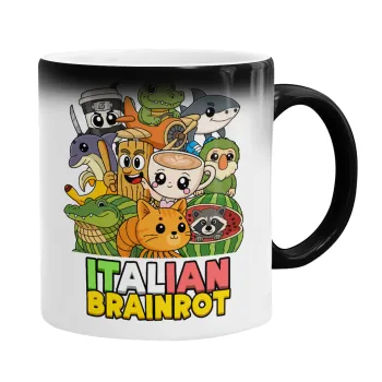 Italian Brainrot friends, Κούπα Μαγική, κεραμική, 330ml που αλλάζει χρώμα με το ζεστό ρόφημα