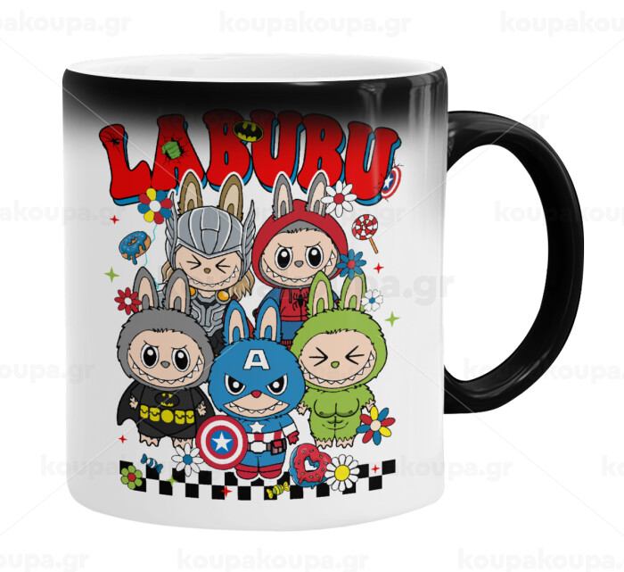 Labubu superheroes, Κούπα Μαγική, κεραμική, 330ml που αλλάζει χρώμα με το ζεστό ρόφημα