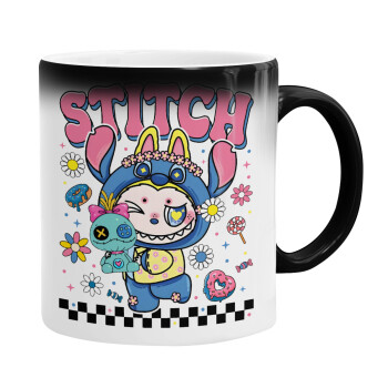 Labubu Stitch, Κούπα Μαγική, κεραμική, 330ml που αλλάζει χρώμα με το ζεστό ρόφημα