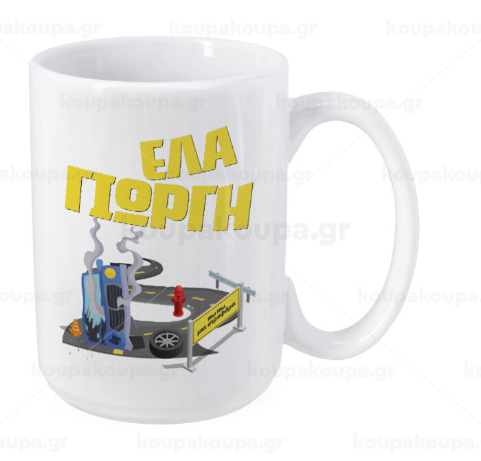 Έλα Γιώργη, πω πω μια στροφάρα, Κούπα Mega, κεραμική, 450ml