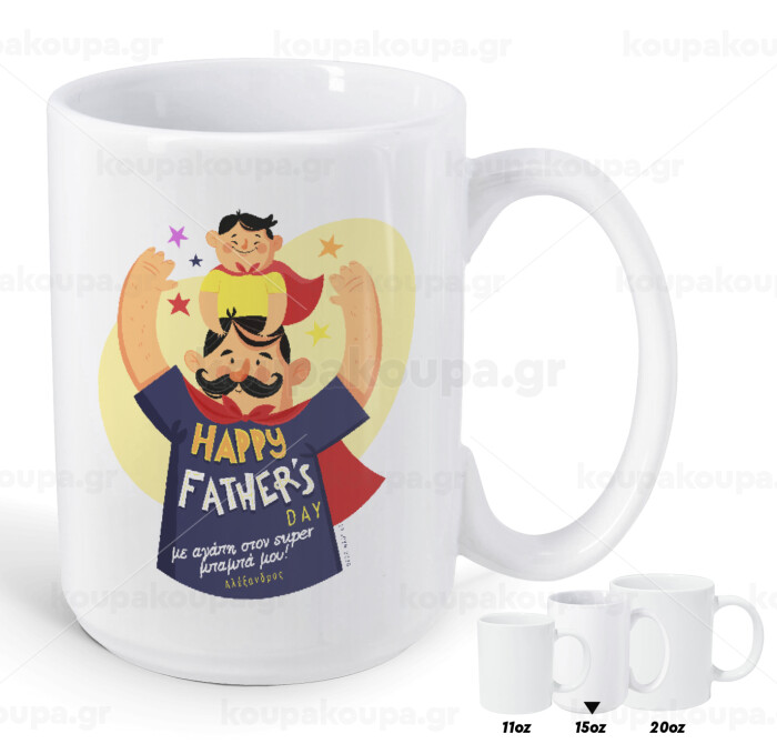 Happy Fathers Day με όνομα, Κούπα Mega, κεραμική, 450ml