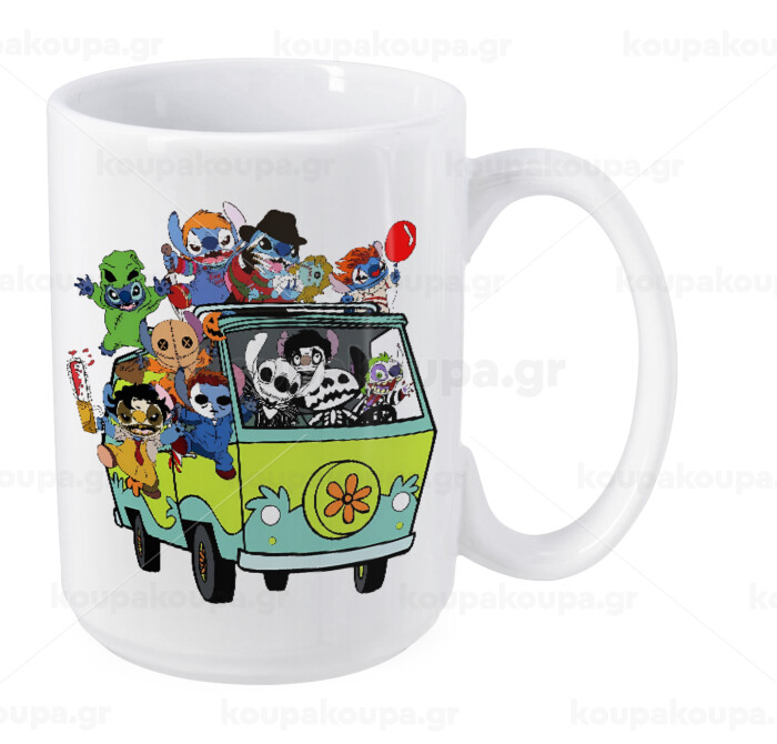 Stitch Halloween scooby car, Κούπα Mega, κεραμική, 450ml