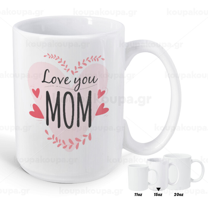 Mother's day I Love you Mom heart, Κούπα Mega, κεραμική, 450ml