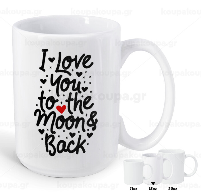 I love you to the moon and back with hearts, Κούπα Mega, κεραμική, 450ml