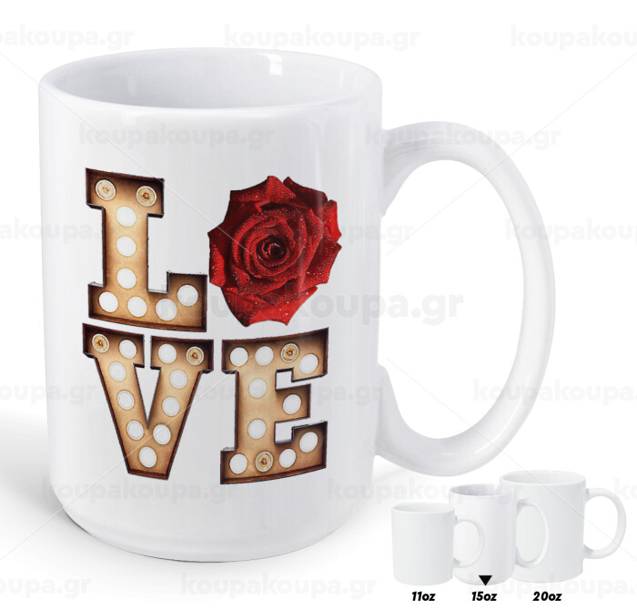 Love lights and roses, Κούπα Mega, κεραμική, 450ml