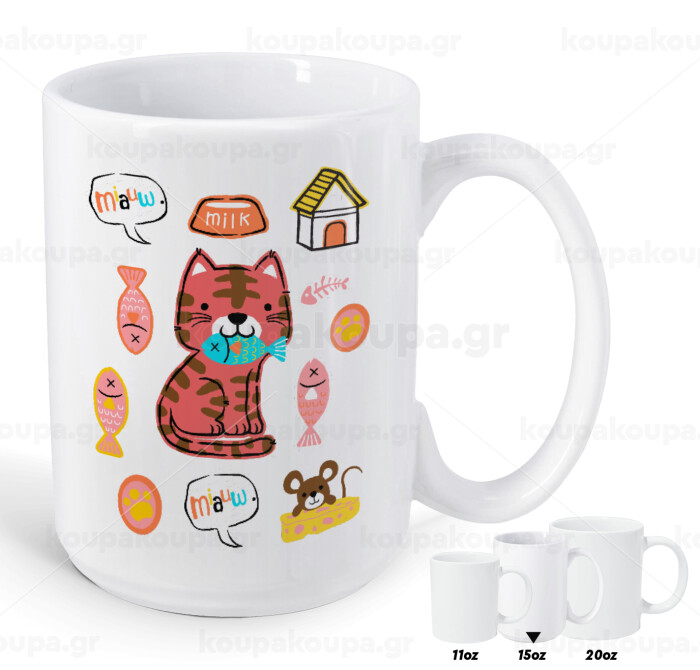 Cats and Fishes, Κούπα Mega, κεραμική, 450ml