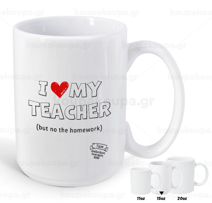 i love my teacher but no the homework outline, Κούπα Mega, κεραμική, 450ml