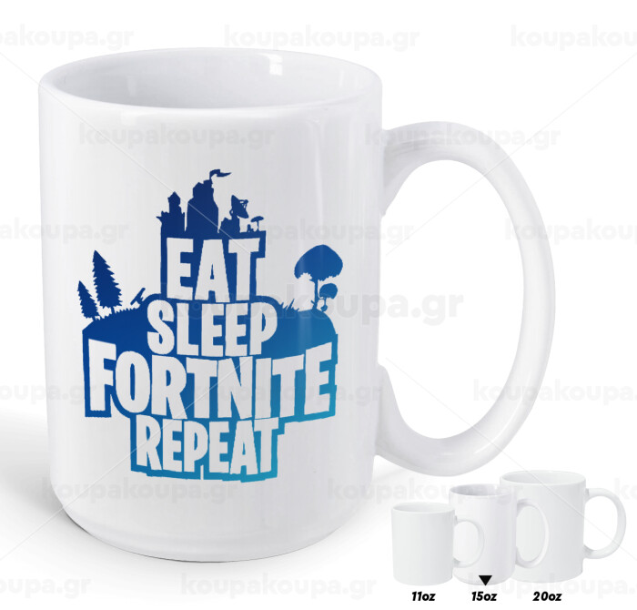 Eat Sleep Fortnite Repeat, Κούπα Mega, κεραμική, 450ml