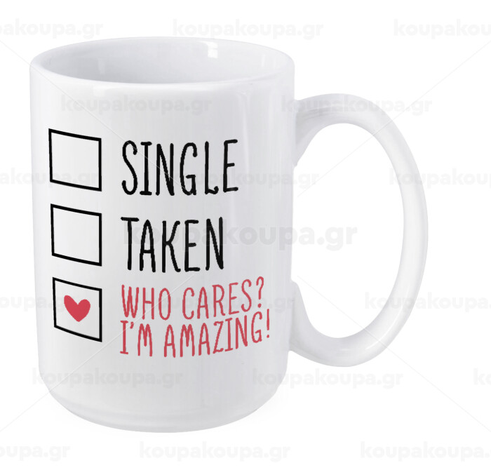 Single, Taken, Who cares i'm amazing, Κούπα Mega, κεραμική, 450ml