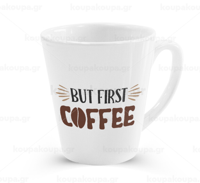 But first Coffee, Κούπα κωνική Latte Λευκή, κεραμική, 300ml