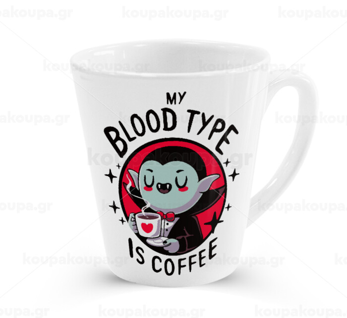 My blood type is coffee, Κούπα κωνική Latte Λευκή, κεραμική, 300ml