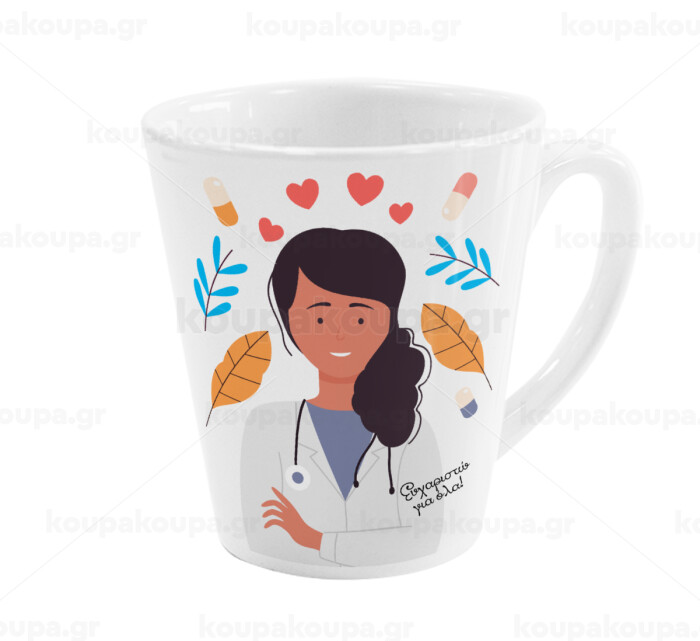Ευχαριστώ για όλα γιατρέ, Κούπα κωνική Latte Λευκή, κεραμική, 300ml