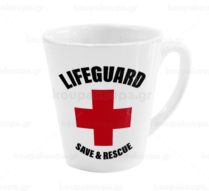 Lifeguard Save & Rescue, Κούπα κωνική Latte Λευκή, κεραμική, 300ml