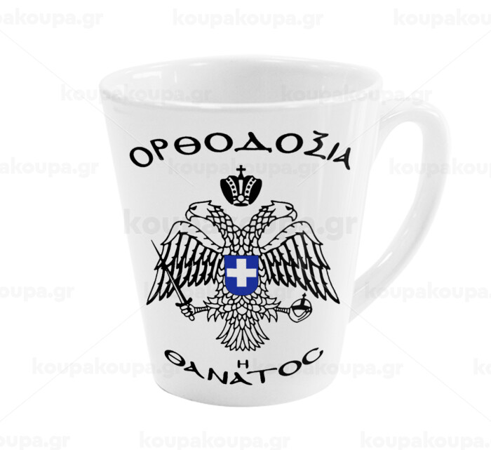 Ορθοδοξία ή Θάνατος, Κούπα κωνική Latte Λευκή, κεραμική, 300ml