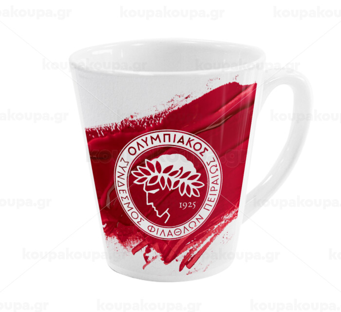 Olympiacos F.C., Κούπα κωνική Latte Λευκή, κεραμική, 300ml
